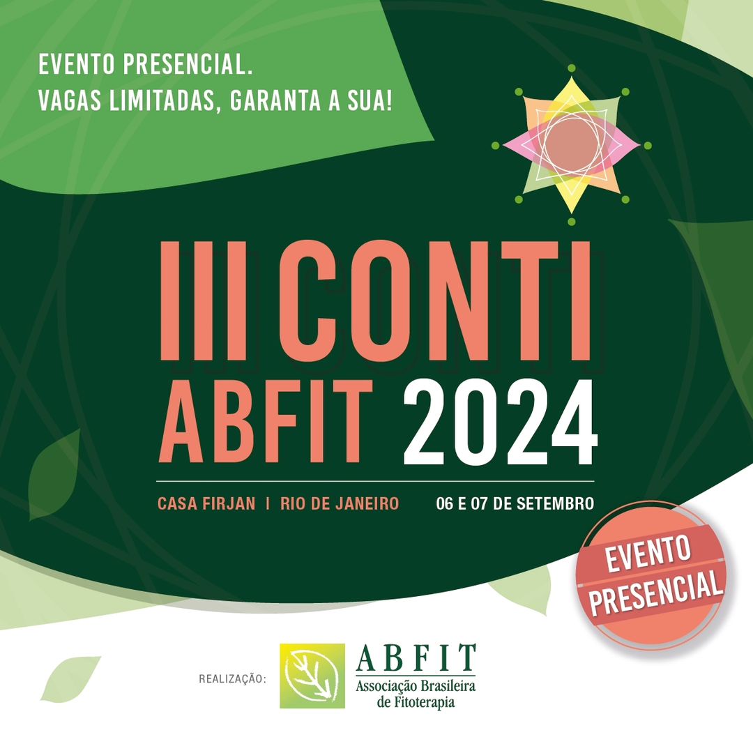 - O III CONTI ABFIT 2024 – III CONGRESSO NACIONAL DE TERAPIAS INTEGRADAS DA ABFIT, que irá abrigar a IX Jornada de Fitoterapia do Rio de Janeiro, nos dias 06 e 07 de setembro de 2024, na Casa FIRJAN, Rio de Janeiro. Nesta edição o congresso será todo presencial, tudo pensado com muito carinho para você não ficar de fora e não perder um só detalhe deste evento que é o mais dinâmico congresso de terapias integradas do RJ.Os palestrantes, todos profissionais destaques nas suas áreas esperarão você neste espaço incrível no Rio de Janeiro.
